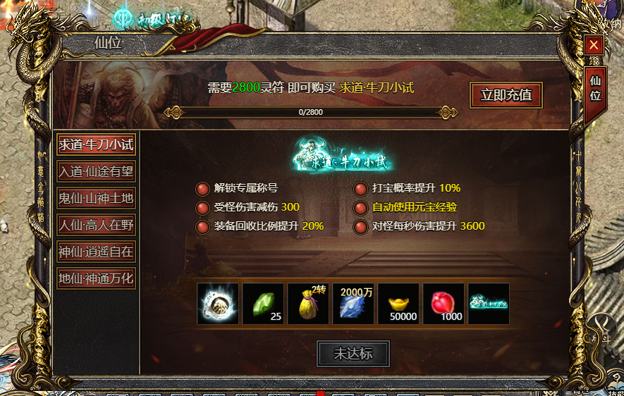 首充玩家:推荐入道·仙途有望仙位,自动回收装备,节省时间。