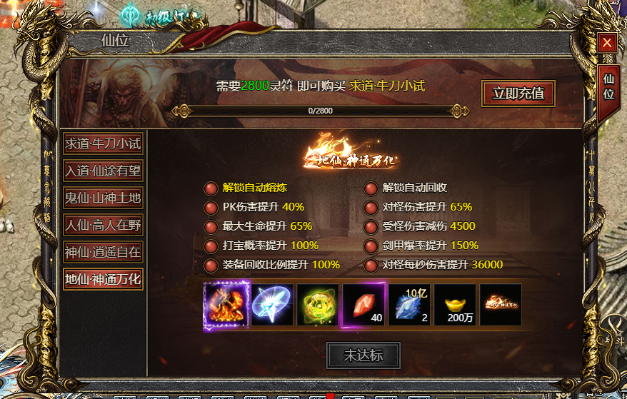 中氪玩家:人仙·逍遥自在仙位,提升装备爆率和PK伤害。