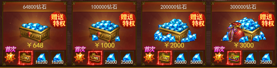 GM特权的等级与功能:GM特权分为多个等级,从GM1到GM7,每个等级都有其独特的功能和优势。GM1至GM3的特权可以通过使用游戏内的钻石购买获得。然而,从GM4开始,直接使用钻石购买就显得不太划算,推荐玩家通过充值商城里的特定档位来获取直升卡,从而快速提升至GM4、GM5、GM6和GM7。GM特权包括自动回收、一键拾取、自动分解、直升转生等功能,这些功能都包含在游戏的赞助系统中。