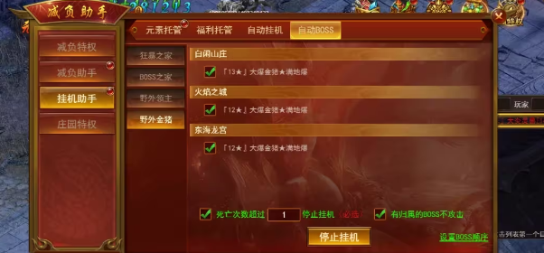 记下复活时间:零氪玩家可以通过记住金猪复活的时间,提前蹲点,或使用辅助工具进行挂机,设置好自动BOSS挑战顺序,专注于金猪。
