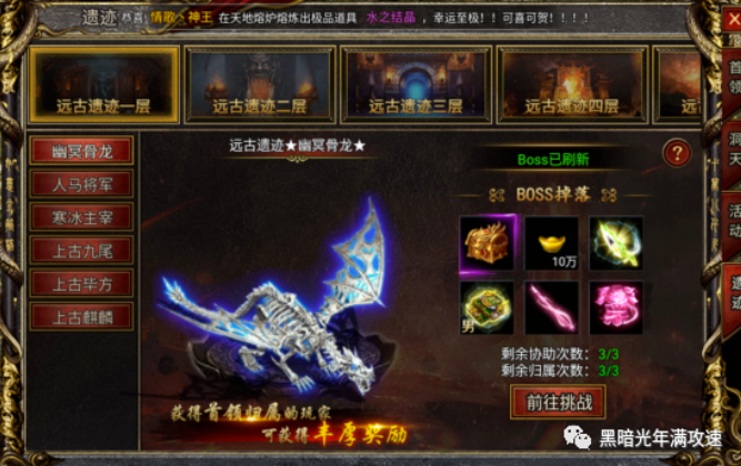刷元宝:个人建议根据自已的战力,去选择能3-5秒刷一个怪的地图,在这个地图上刷怪一晚上,绝对可以收获满满。其次,每天的远古遗迹3次归属和协助,做完之后也能收获不少元宝。