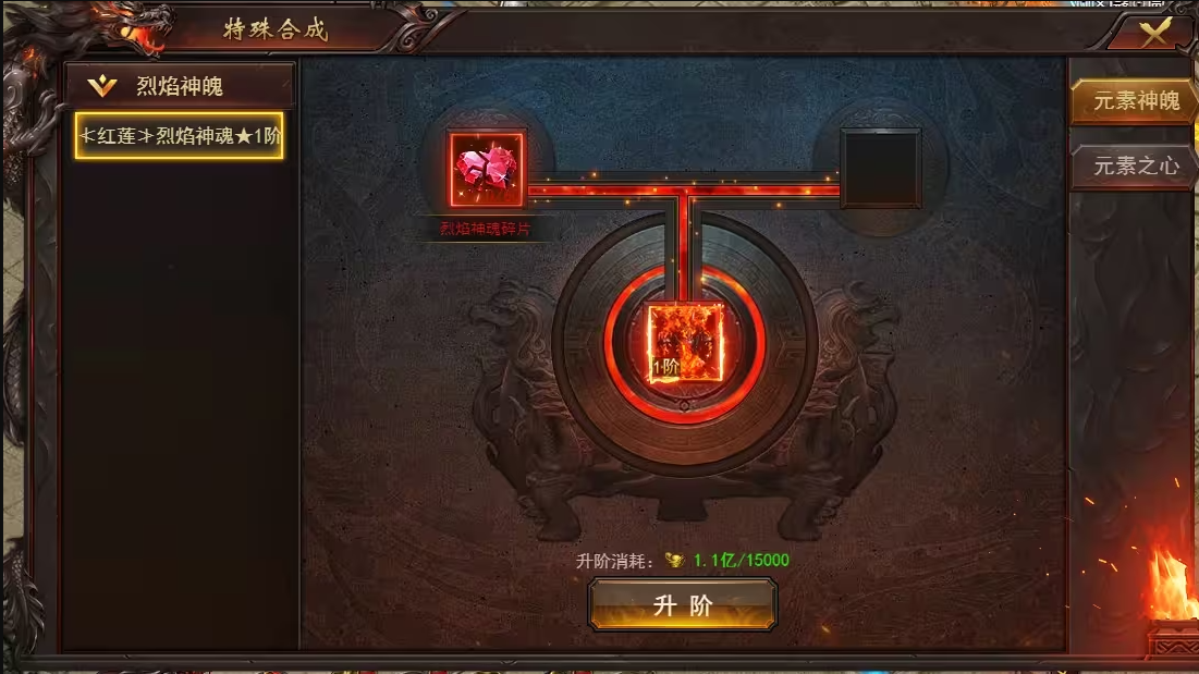 2. 元素之心:可用元素碎片合成,可增加装备进阶成功率,最高可增加 25%。