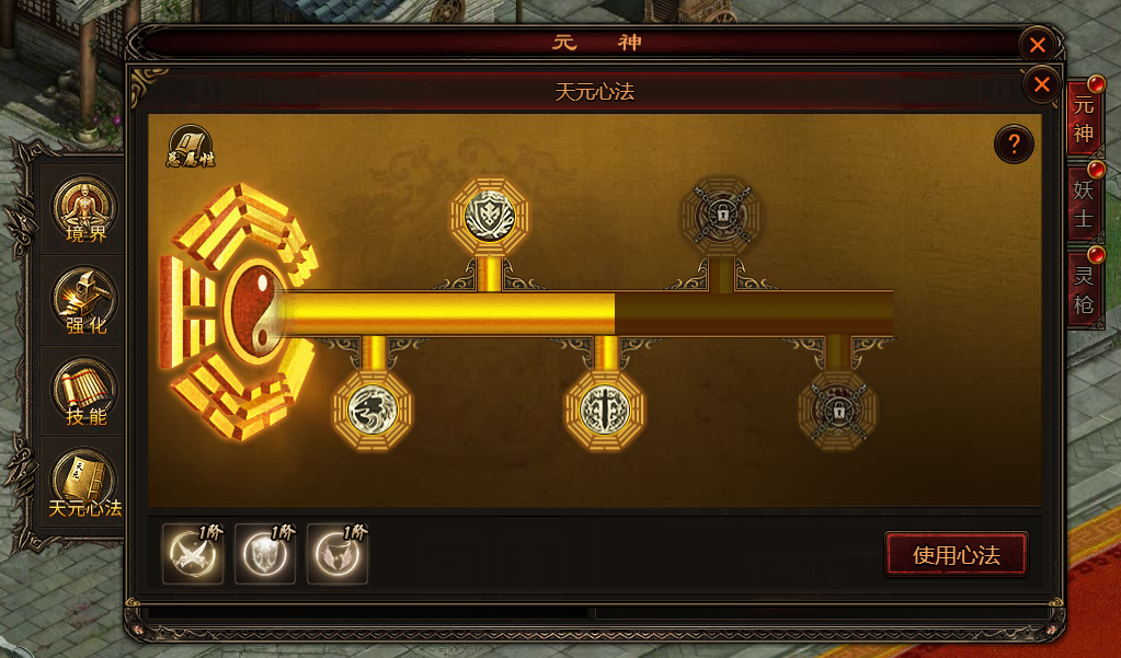 一、天元心法系统概述天元心法是一个长期培养的系统玩法,专注于提升元神的属性,进而增强玩家的战斗力。