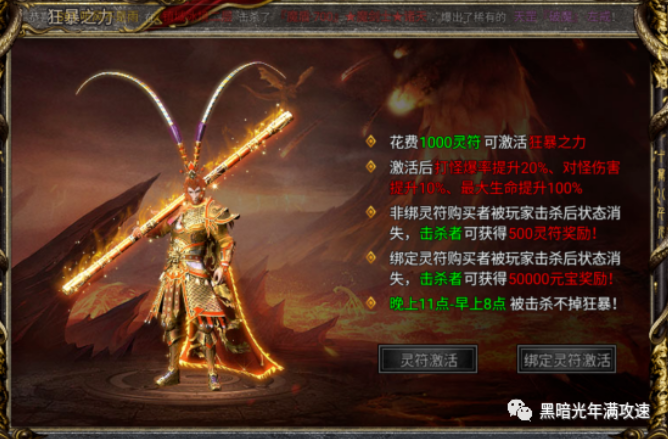 狂暴之力不仅属性的性价比很高,而且还有最人性化的一点,那就是晚上23点到早上8点被击杀是不会掉落狂暴之力的,大家睡觉的时候就可以安心挂机打宝了,对于想要刷元宝和刷装备的玩家来说,可以说是非常有用的了,有条件的小伙伴建议一定要将狂暴之力开启哟!
