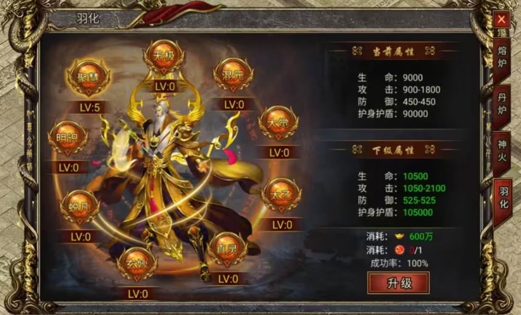 玩家需要根据不同的丹药品质来选择合适的炼制时长,并及时收取对应品质的丹药。不同品质的丹药可以用来升级羽化系统的不同部位,大幅提升角色攻击、生命、防御,还有多种珍稀属性,如护身护盾、切割伤害、暴伤加成等。