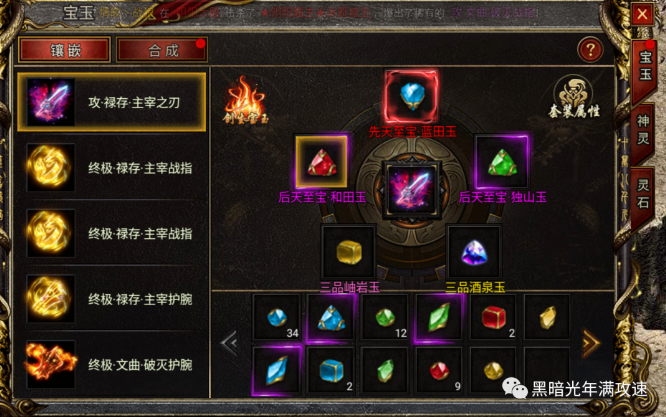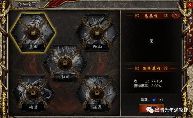 1、每个可镶嵌宝玉的装备部位都有一个单独的创生宝玉系统,相互独立。