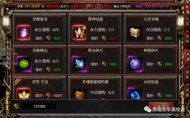 微氪玩家没有技巧项链没有护体神盾的情况下,可以先在声望商城入手涅槃精石,然后再选择阵法和神鼎。有技巧项链的玩家可以使用声望入手水纹结晶,因为水纹和技巧项链有套装属性,加的还是蛮多的。