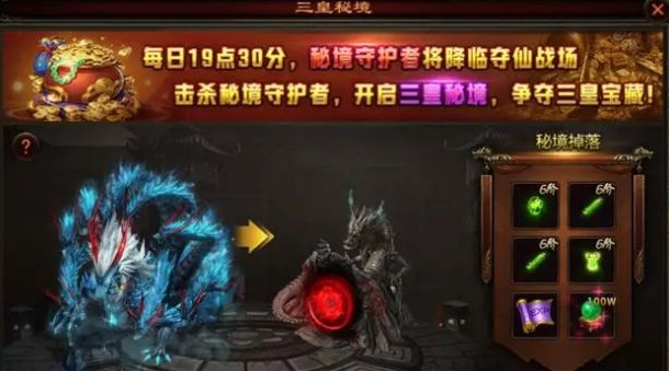 三皇秘境活动每日19点30分在夺仙战场开启,届时会出现秘境守护者。击杀守护者后,附近会出现人皇秘境入口,该入口存在2小时。跨服资源的多少将决定秘境的开放层次。