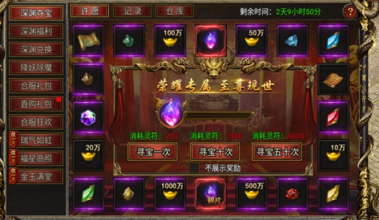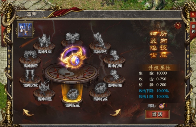 深渊夺宝活动:通过参与深渊夺宝活动,玩家有机会获得黑暗宝玉,用于兑换雷神装备部位。雷神战刃和雷神战甲需要75个黑暗宝玉,而其他部位则需要15个宝玉。