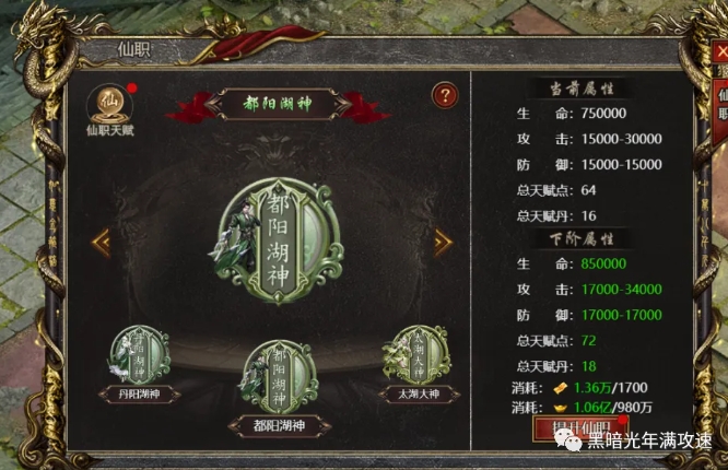飞升装备不仅大幅提升基础属性,集齐全身同阶级 10 件还能激活套装属性。强化石可进一步提升飞升装备属性,强化石可在飞升宝库兑换(每天限购 20 个,需飞升令牌),或通过运营活动、熔炼多余飞升装备获得。