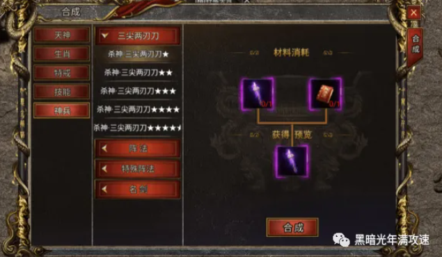 当三尖两刃刀升级到5星后,您可以将其回收,从而获得一把三尖两刃刀的幻武。激活幻武后,将永久增加一定的切割、吸血、免爆和爆率属性,这无疑是非常诱人的。