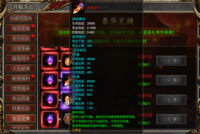 材料获取:通过参与游戏内的运营活动,可以获得龙神装备材料。