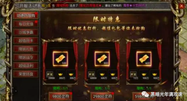 1.开服活动:每日的功德符限购,大概可以获得1000个功德符;