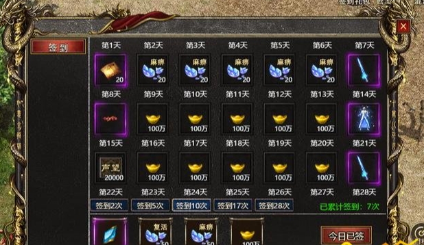 签到礼包:每日签到领取元宝,持续签到奖励更丰富。