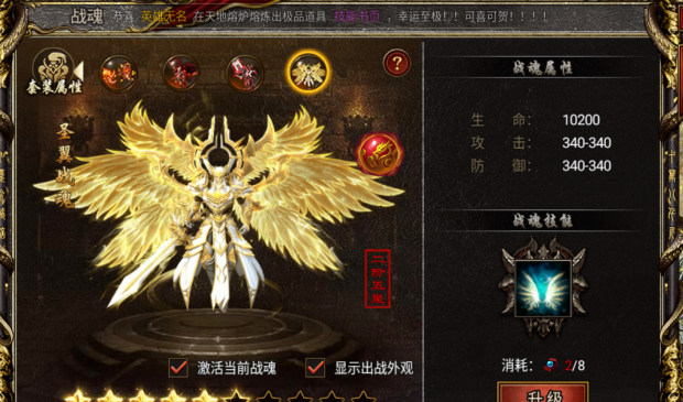 圣翼雨霖:战魂出战后,玩家攻击时有概率触发,沐浴在圣翼雨霖下,瞬间回复10%+100万生命值。