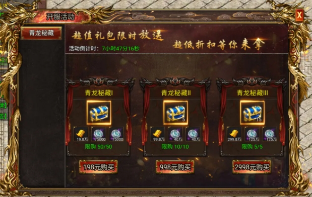 宝箱档次:宝箱分为三个档次,玩家可以通过购买不同档次的宝箱来获取青龙装备。