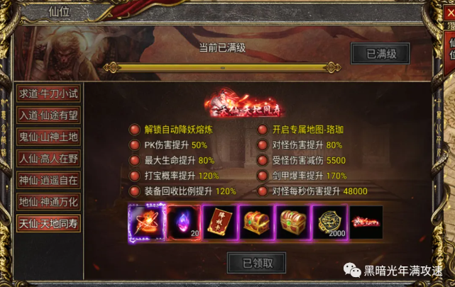 后面合服活动有转盘的时候可以冲一下,然后就是切割原石弄铭文,最后有条件还是可以拉满仙位,毕竟地仙可以增加爆率。