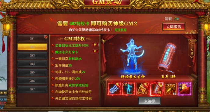 对于首充玩家来说,第一天的目标应该是通过参与首爆和真金大爆等活动,积累足够的钻石来购买GM特权。在新区开服的初期,小氪玩家可以尝试将钻石投入到GM特权中,努力达到GM2-3级,这将为后续的游戏进程奠定坚实的基础。