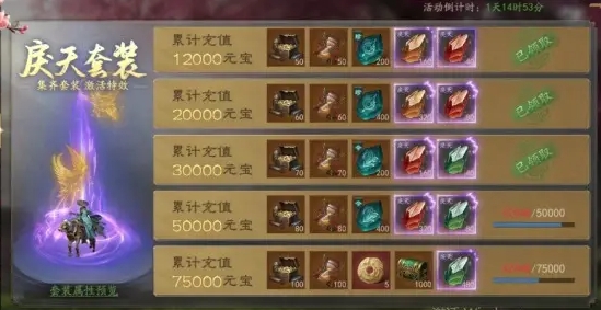 获取成本高:戾天套装需要通过累计充值获得,累计7500元宝即可获得除武器以外的四个部位全部突破道具,武器碎片需要通过限购活动充值达到3000元宝后解锁购买,总共需要3万元宝。