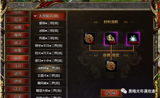 2. 三界铭文:提升各种技能的伤害和减伤效果,可以大幅度提高角色的战斗能力,让玩家更加容易打败敌人。