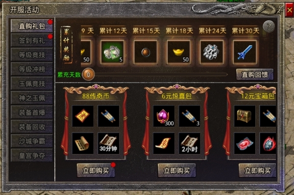 开服活动:游戏新区前7天只有开服活动,这是玩家获取初始资源和装备的重要时期。开服活动通常包括登录奖励、新手礼包、首充双倍等,玩家应充分利用这些活动,快速提升等级和战斗力。