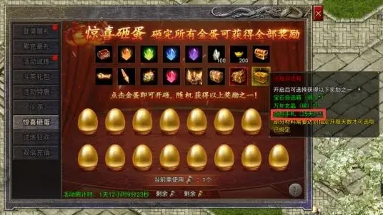 砸蛋活动:砸蛋活动每隔1个月出现一次,玩家可以通过砸蛋,获得各种惊喜奖励。