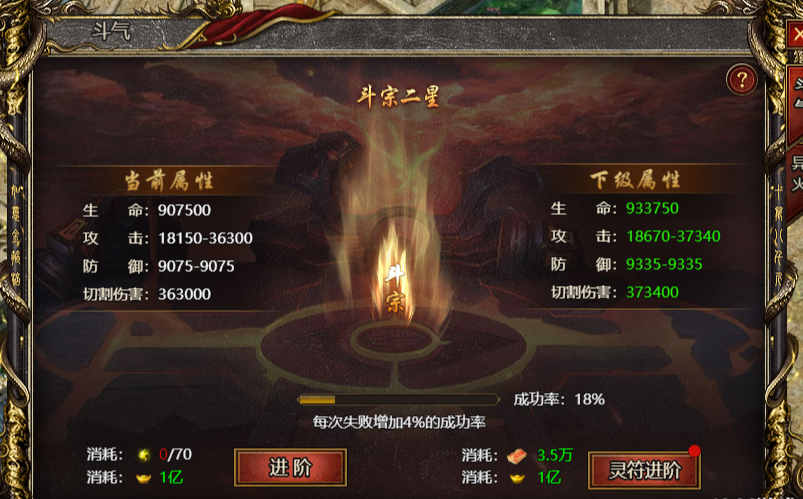 在白蛇传奇游戏中可以通过耗费斗气丹与元宝来提高斗气等级,也能够使用灵符加上若干元宝进行提升。在将斗气系统等级提升之后,玩家能够获取攻击、生命、防御、切割伤害等属性加成。斗气等级越高,属性加成的效果就越显著。