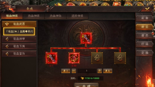 吸血玄铁是合成和升级吸血神装的关键材料。通过参加上述活动,玩家可以逐步积累吸血玄铁。这些材料不仅可以用于合成吸血神装,还可以用于后续的升级,进一步提升装备的属性和效果。
