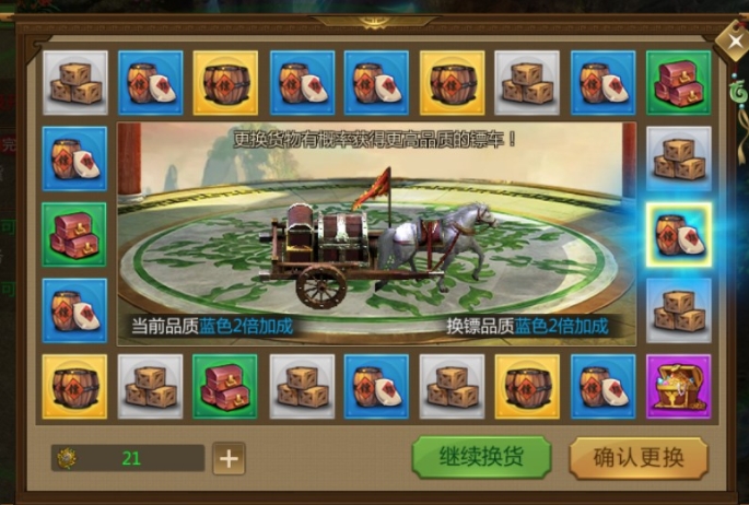 如果玩家有额外的换货令,可以通过换货机制争取获得更高品质的镖车,从而获得更丰厚的奖励。