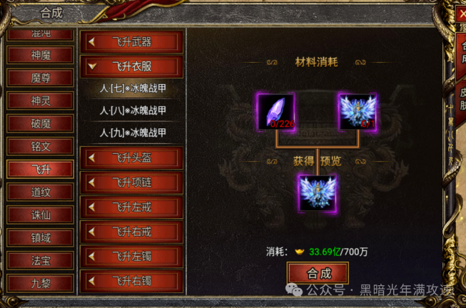 大家想要获得飞升装备,可以通过挑战飞升大陆里的各种BOSS获取合成材料,再加上材料重铸石后进行合成获得。重铸石可以通过运营活动、飞升宝库、高级飞升装备熔炉等途径获取。