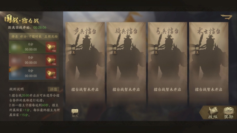 兵种擂台:包括步兵、骑兵、弓兵、术士擂台。