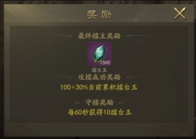 擂主累积的擂台玉:擂主累积的擂台玉越多,攻擂成功后获得的奖励也越多。