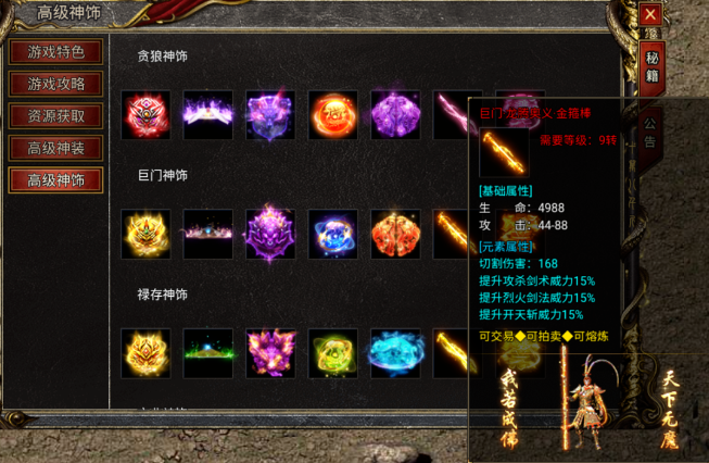 巨门·龙腾奥义·金箍棒:佩戴等级要求为9转