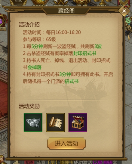 消灭奖励:消灭盗经贼后,他们会散落出封印的招式书。这些封印的招式书是活动的核心奖励之一。