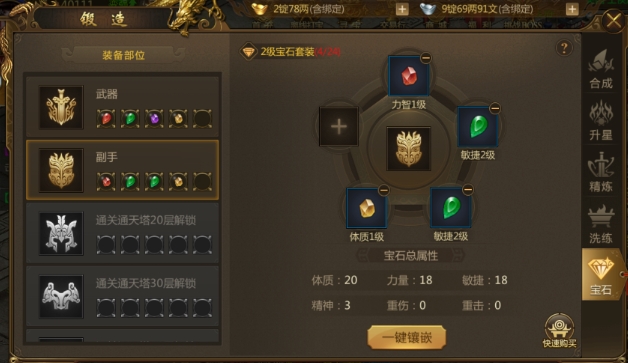 宝石种类:游戏中提供了多种宝石,包括攻击宝石、防御宝石、生命宝石等。每种宝石都有其独特的属性加成,玩家可以根据自己的需求选择合适的宝石进行镶嵌。