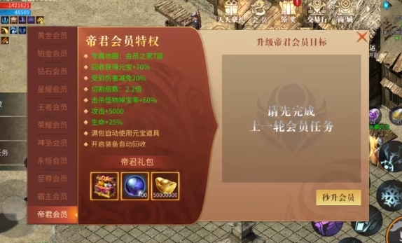消耗100000钻石:直升7转,赠送SSS级仙装腰带。这一阶段的会员不仅拥有强大的装备支持,还能在游戏内享受更高的地位和特权。