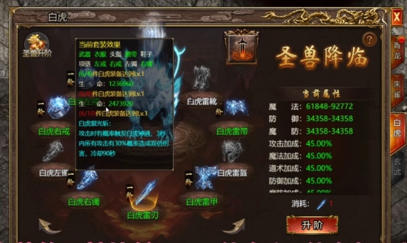 完整的白虎套装能够激活强大的套装效果,使玩家在战斗中更具优势。因此,建议玩家优先凑齐套装,以最大化其属性加成。