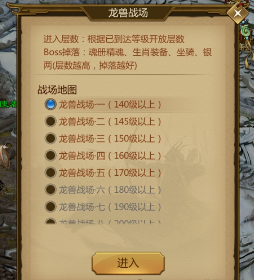 等级要求:玩家角色等级需达到140级。满足以上条件后,玩家即可进入龙兽战场,开始获取精魂的征程。