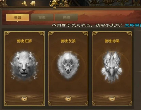 激活魂兽:将获取的精魂放入魂册系统中,激活对应的魂兽。激活成功后,角色将获得相应的属性提升。