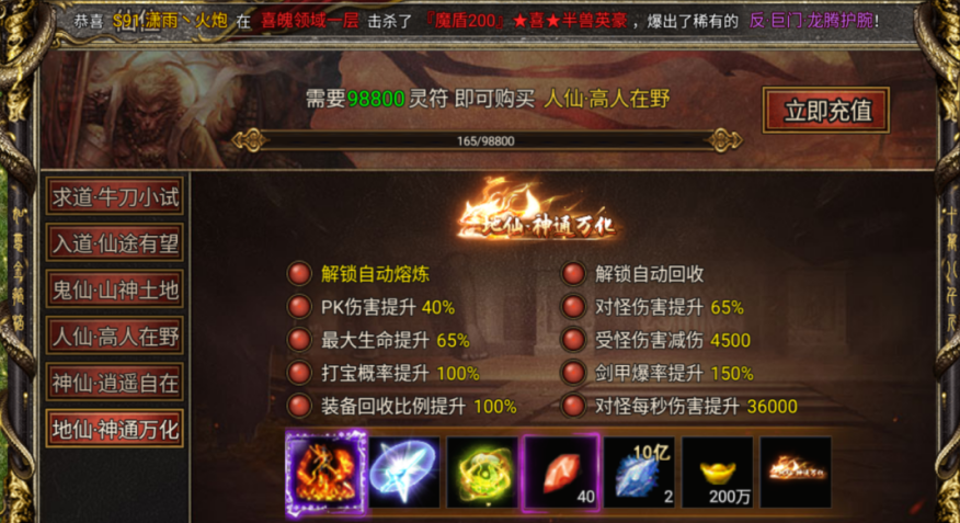 首先就是仙位,地仙送的时装能够提升10%的经验倍率,其次就是生肖里的鼠也能提升经验倍率,提升至上品鼠能够提高30%的经验倍率。这两样就能提升我们40%的经验倍率了,再找一个适合自己战力的地图挂机,升级不再困难!