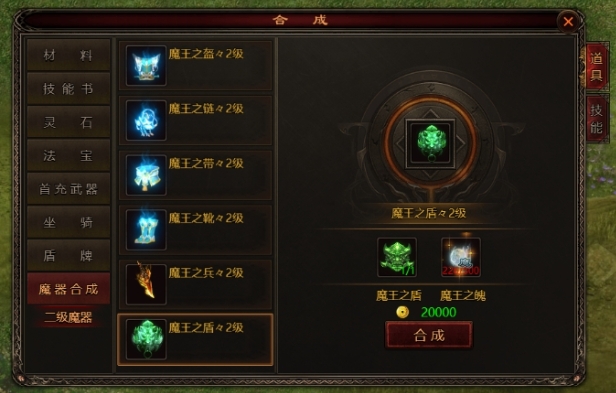 合成材料:玩家需要收集相应的材料,如魔王之魂和魔王之魄。