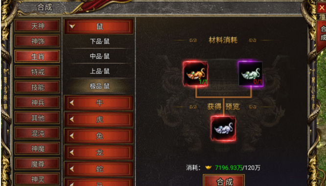 技巧:有实力的话可以先将生肖牛龙蛇猴鸡升满,其他生肖凑齐上品或者极品套就够用了。