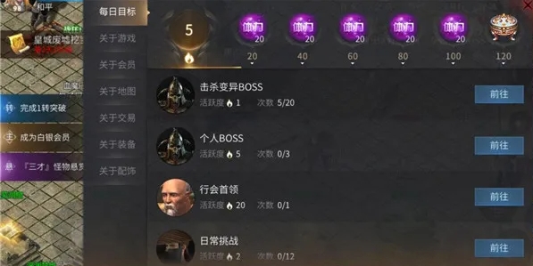 玩家可以根据游戏左侧的任务栏及游戏右上角的打金指南-每日目标进行任务,获取丰富的经验和资源。