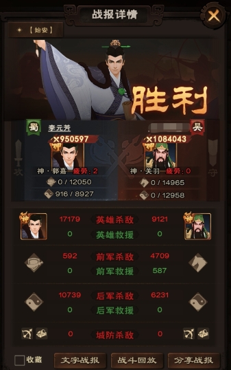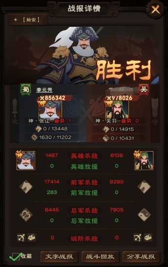 武将:推荐关羽,砍头技能“迎风一刀斩”非常强大,技能推荐“破军一击”“狂狮”,军阵推荐“青龙”,军策推荐“打草惊蛇”“乘胜追击”。