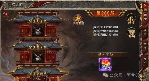 一、洪荒之塔的开启条件与玩法介绍