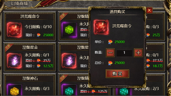 洪荒嗜血令可用于洪荒秘境内进行夺宝,玩家可挑战洪荒之塔获得不死灵花来兑换或在灵符商店内购买道具。在【洪荒秘境】-【夺宝】处,可抽取洪荒神魔,重复的洪荒神魔也可用于星级提升,进而提升整体属性。夺宝可抽取到的神魔为橙色、紫色、蓝色品级,其中橙色品级所带来的属性加成最高。