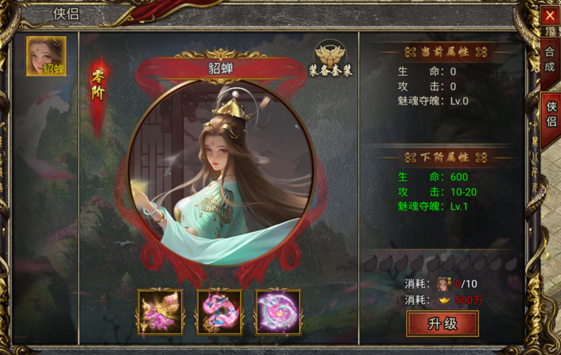 在白蛇传奇游戏中开服150天即可开启侠侣系统。玩家可在【合成】-【侠侣】中查看侠侣属性及加成,初期的侠侣为貂蝉,攻击时有几率魅惑敌方,后续会随游戏时间逐渐新增侠侣角色。