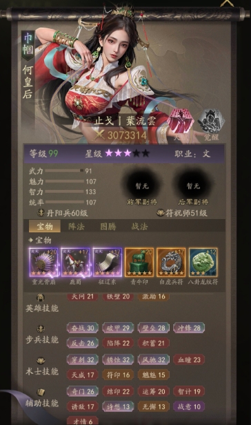 何皇后是一位智力与生存能力兼具的英雄,通过合理培养和搭配,可以在战场上发挥强大的作用。建议玩家在培养何皇后时,优先提升智力和生存能力,选择合适的技能、副将、图腾、战法和装备,以最大化其战斗力。
