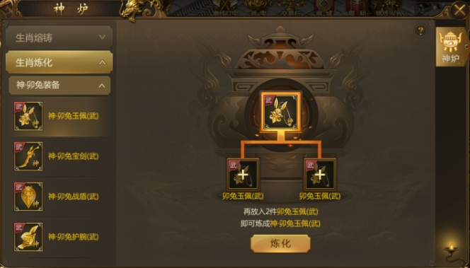 材料需求:合成生肖套装需要使用两件相同生肖的装备。