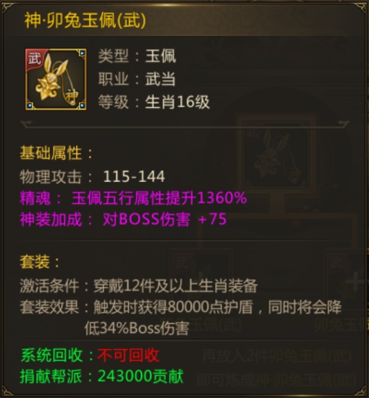 合成结果:通过合成,装备的生肖精魂将升级为更强力的神魂。